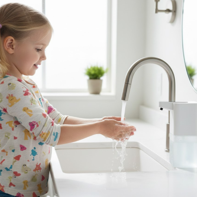 Dieser automatische Seifenspender macht das Händewaschen für Kinder spielerisch. Der berührungslose Sensor gibt sanften Schaum ab, fördert Hygiene und hält kleine Hände sauber und sauber. Kompakt und wiederaufladbar, ideal für Bad und Küche.